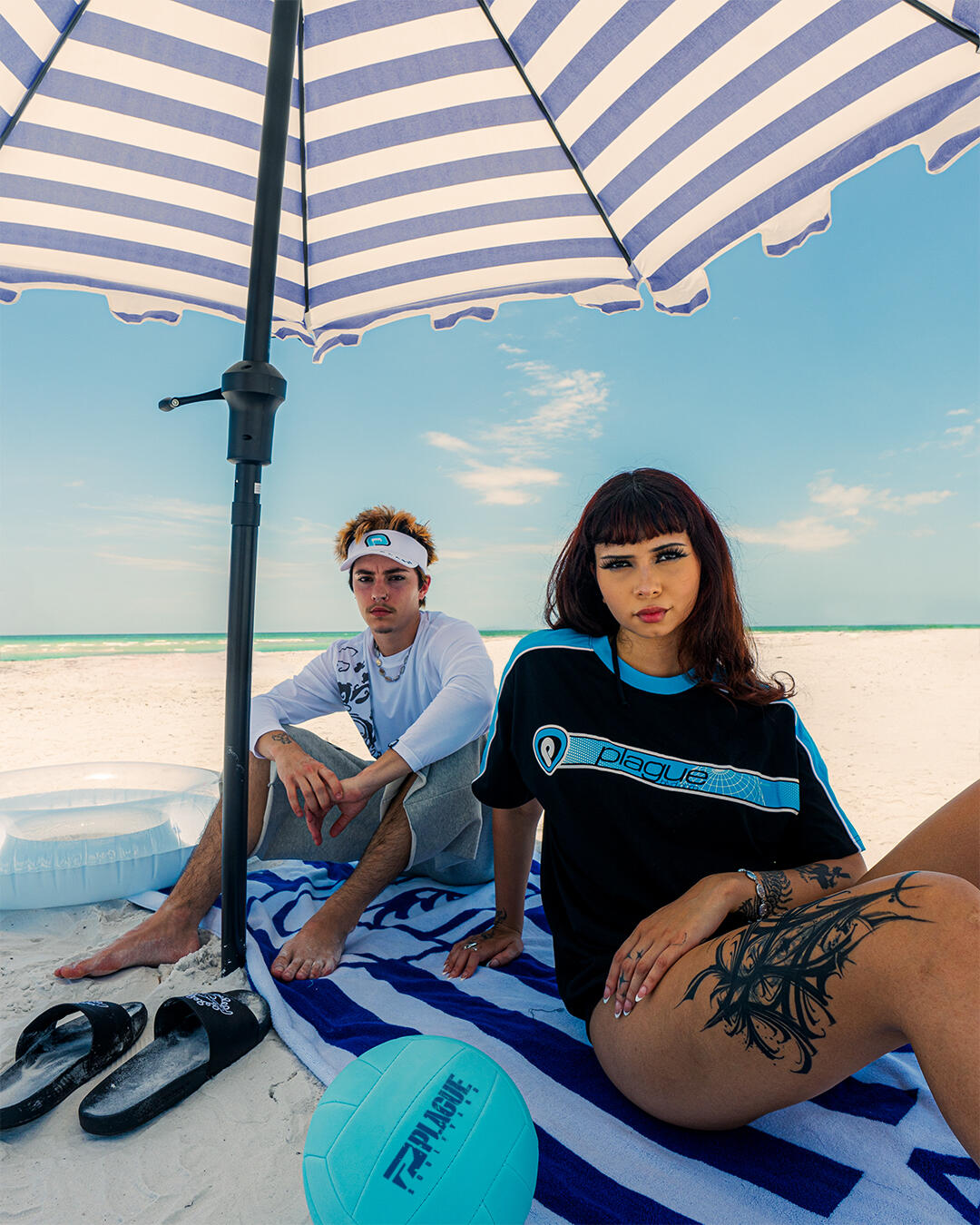 it was a florida summer. amber by 311 blasting from our car speakers, salty winds breathing in our ears & the perfect hue of blue for the backdrop. from the mind of plague boulevard, together we strived to paint this picture for their collection that released in august 2025.